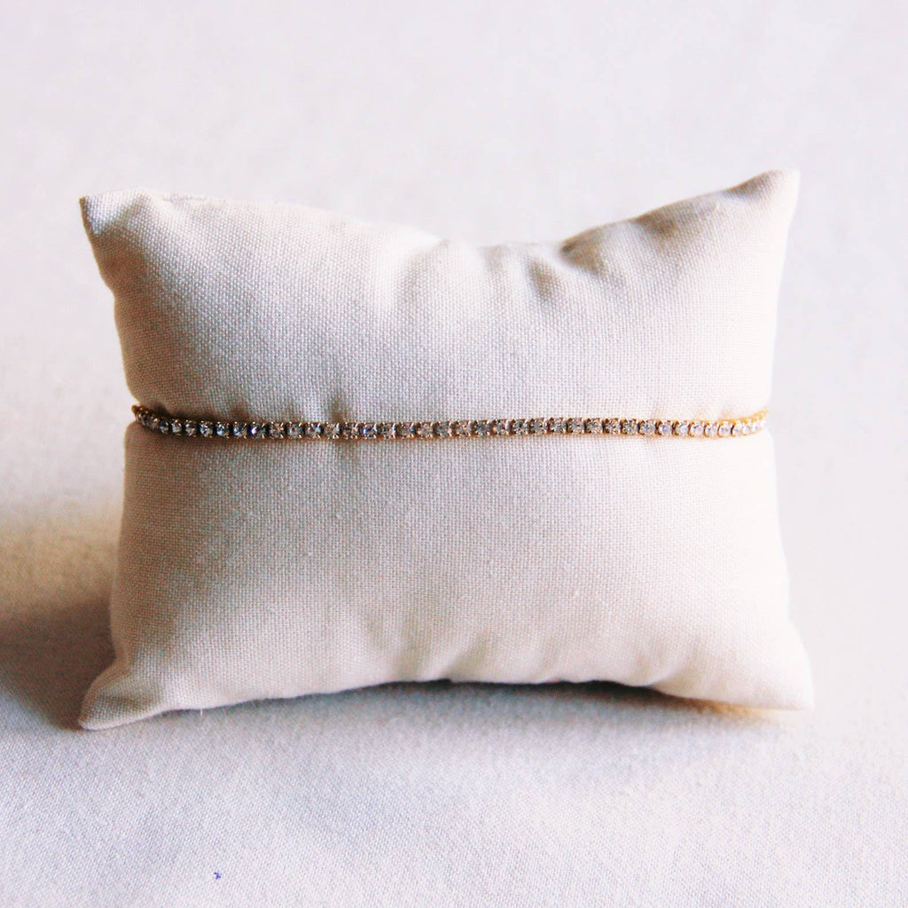 Ce joli bracelet minimaliste orné de strass est parfait pour apporter une touche de subtilité à votre look de fête.