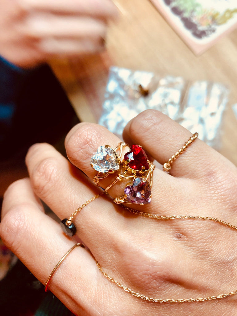 Jolie bague avec une pierre Swarovski en forme de coeur avec monture fine en gold filled.