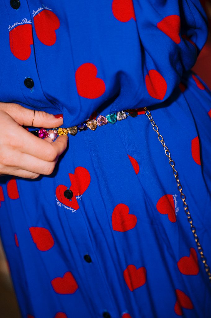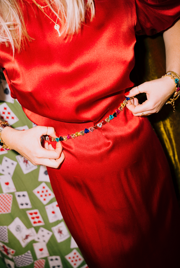 Ceinture élastiquée avec des strass Multicolores en forme de coeurs