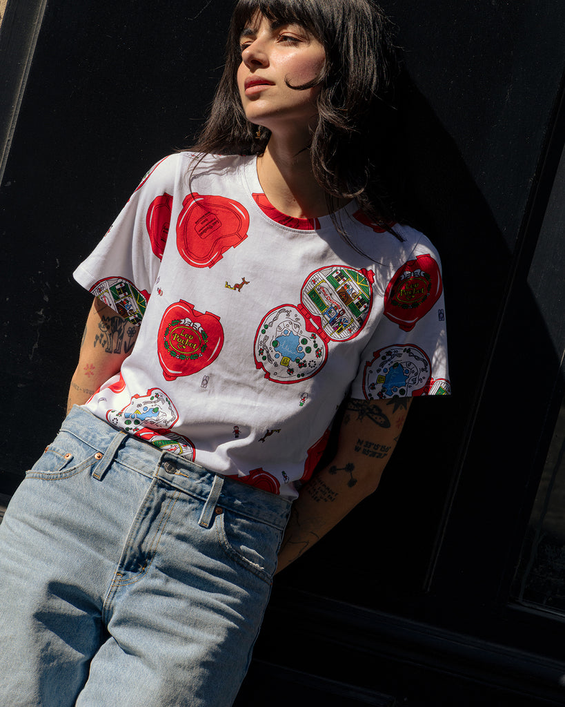 Notre tee-shirt GLORIA "Polly pocket" apportera une touche de nostalgie à votre look! Avec sa forme loose et ses manches courtes, le tee-shirt combine confort et originalité. Idéal pour un look décontracté, ce tee-shirt se porte avec un jean ou une jupe.
