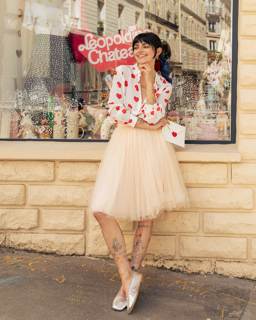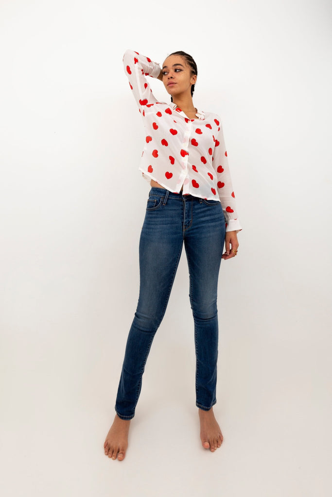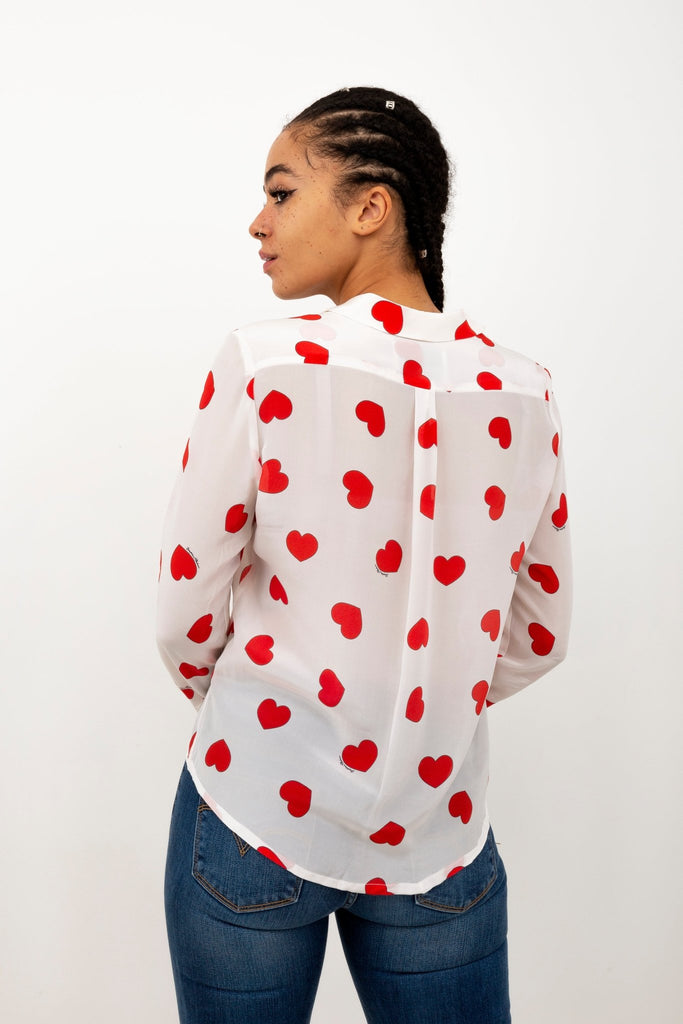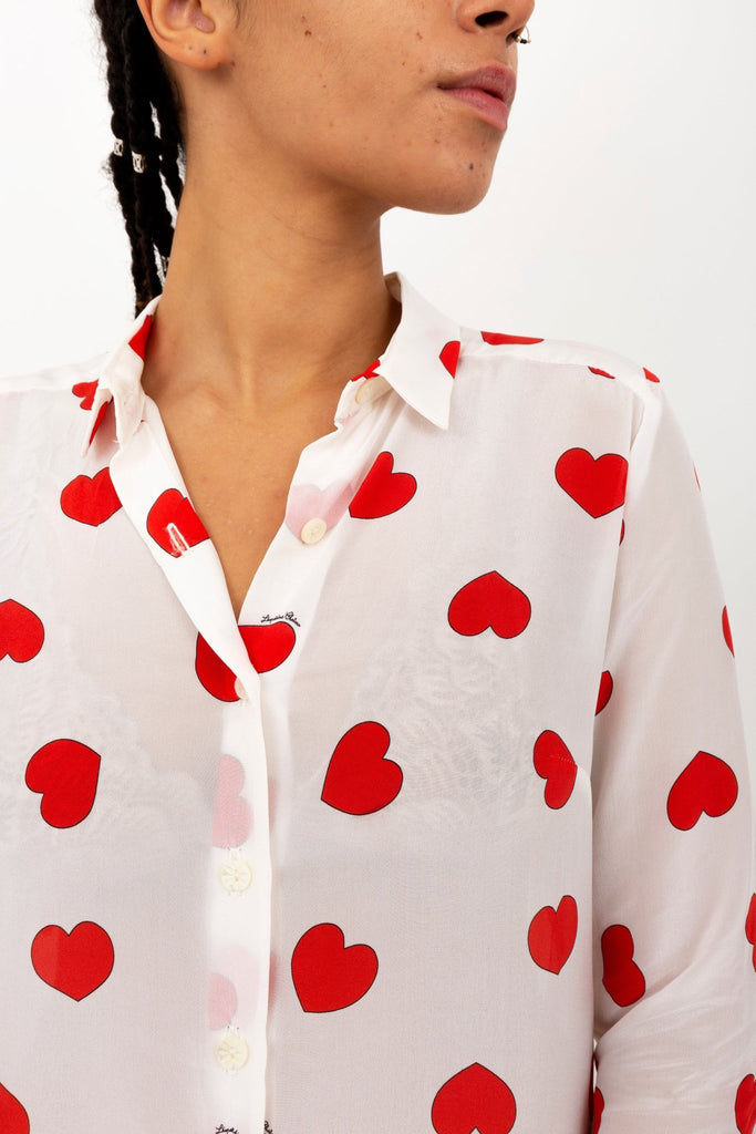 Chemisier COLETTE Blanc Coeurs Rouges (Soie)