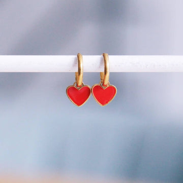 Créoles en acier inoxydable avec mini-cœur — rouge