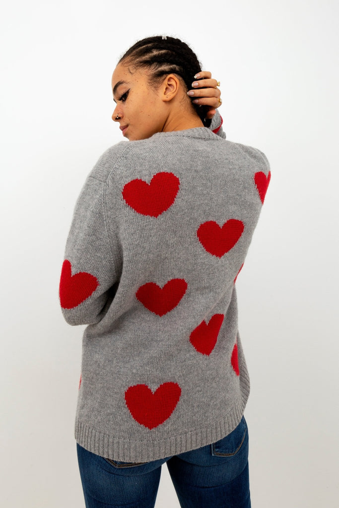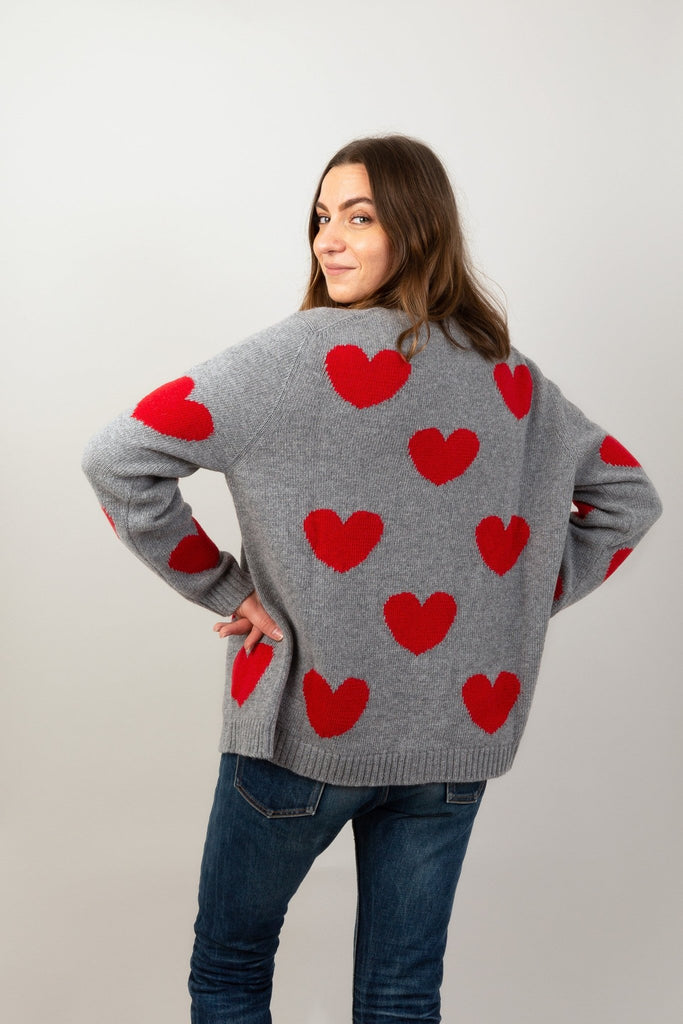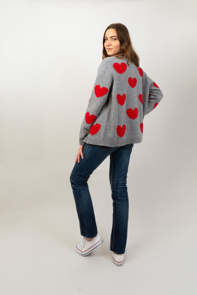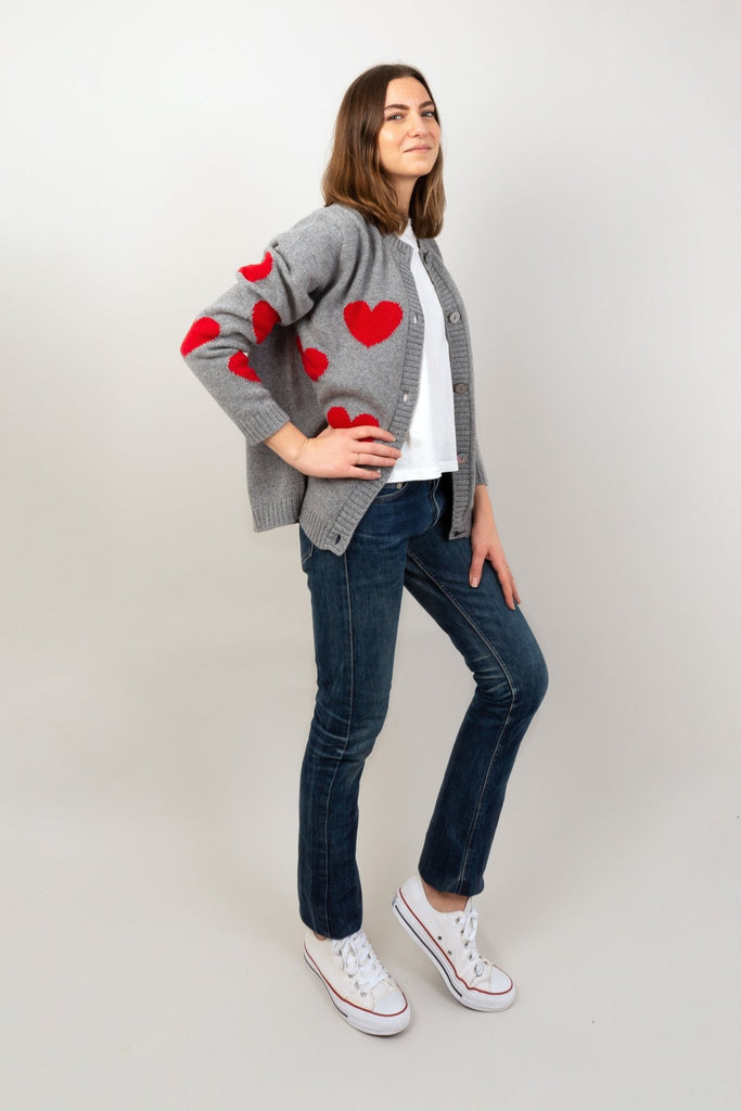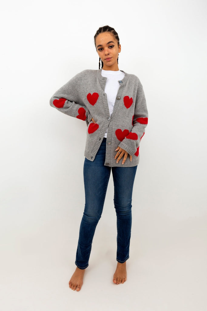 Cardigan CHARLOTTE Gris Jacquards Coeurs
