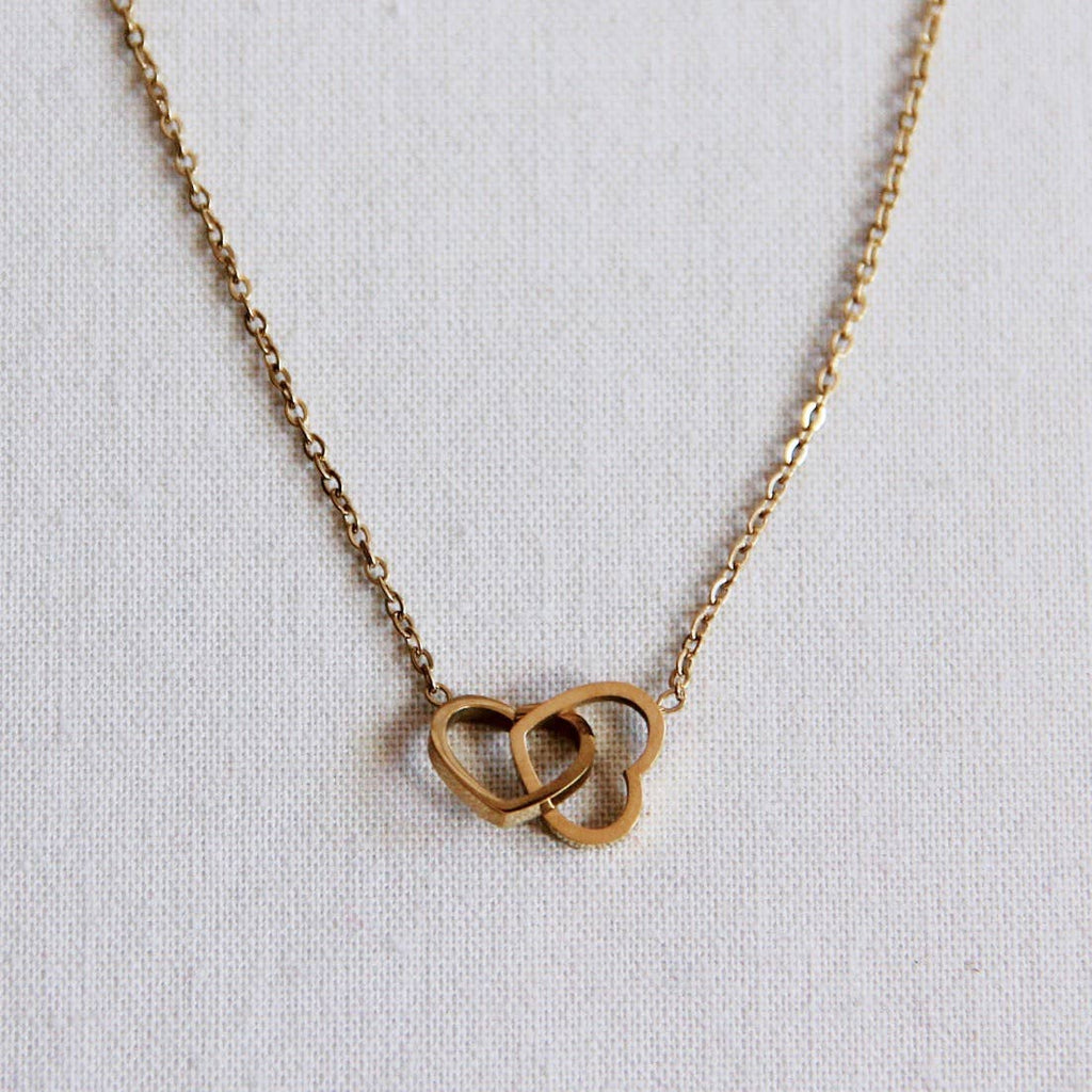 Chaîne fine en acier inoxydable avec breloque en forme de cœur infini — doré