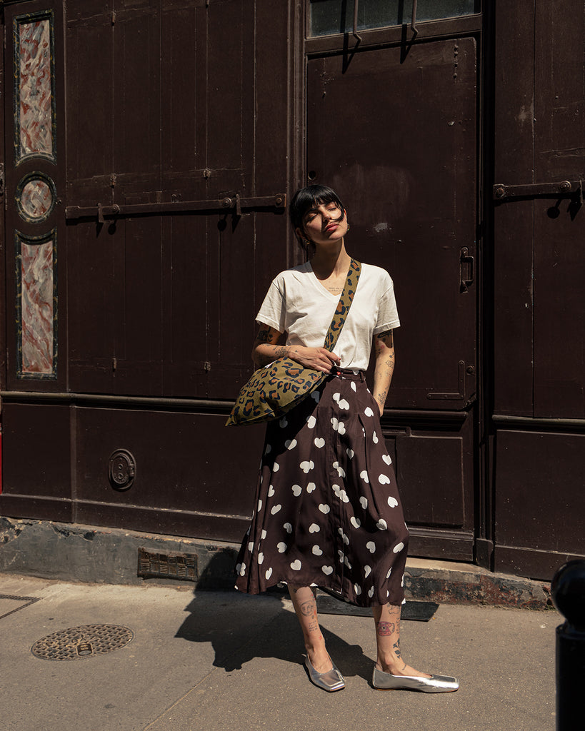 Jupe BRIGITTE Marron Coeurs Blancs