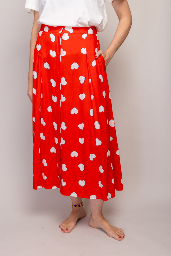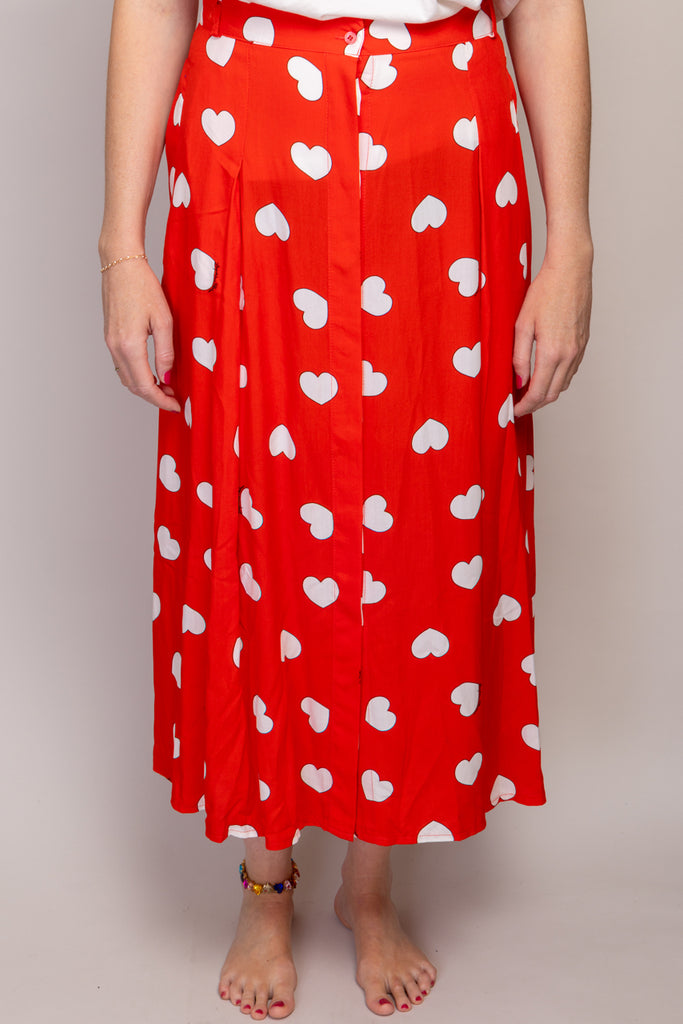 Jupe BRIGITTE Rouge Coeurs Blancs