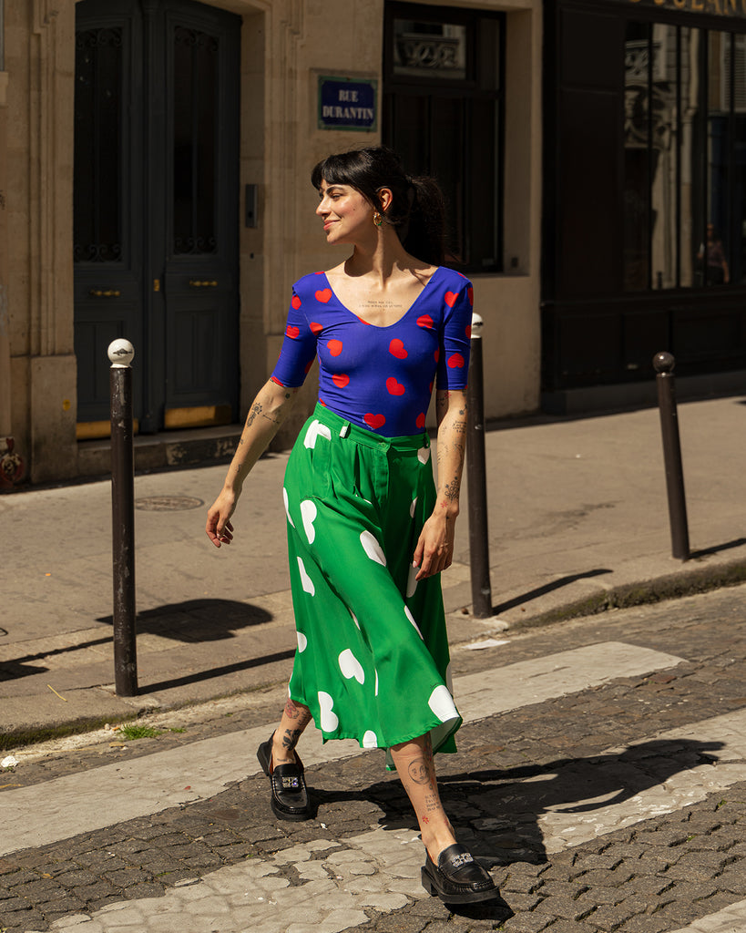 La jupe longueur Midi et sa boutonnière milieu devant, possède des poches côtés. La jupe est vraiment très pratique, originale et facile à porter. N'hésitez pas à mesurer votre taille pour savoir pour quelle taille de jupe opter.
