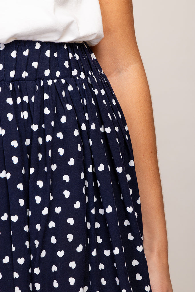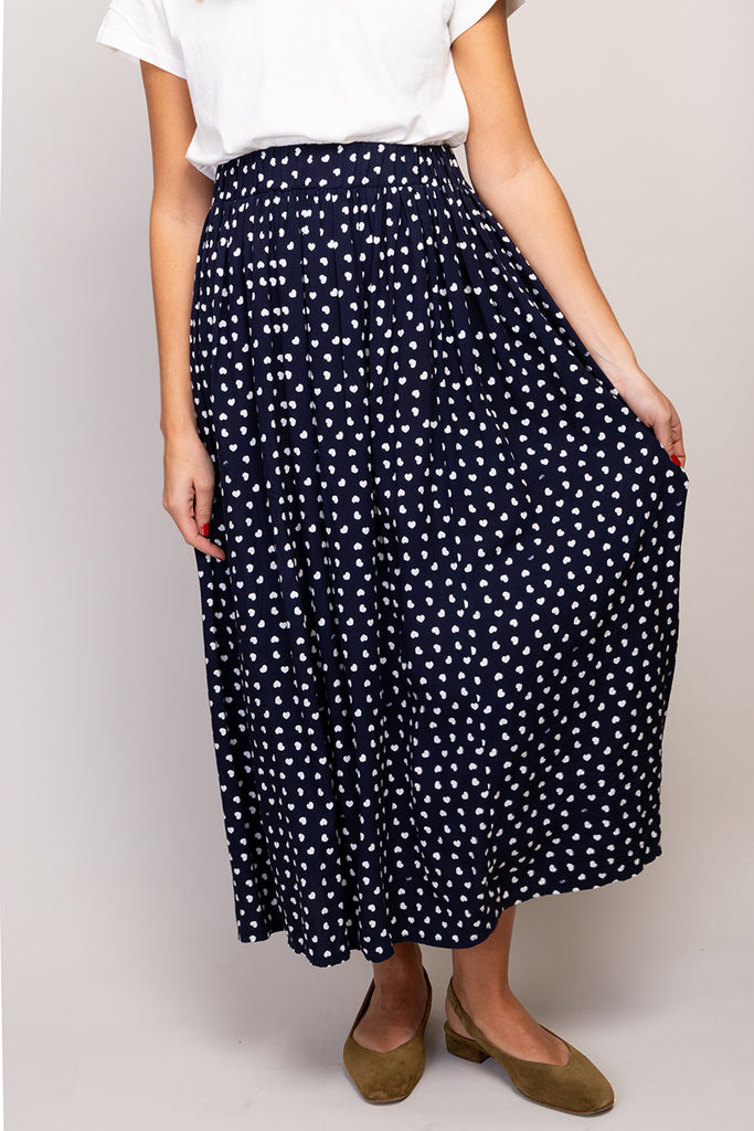 La jupe longueur Midi est vraiment pratique et facile à porter avec sa taille élastiquée. La jupe, dessinée par Léopoldine, peut se porter facilement avec notre top Electra.