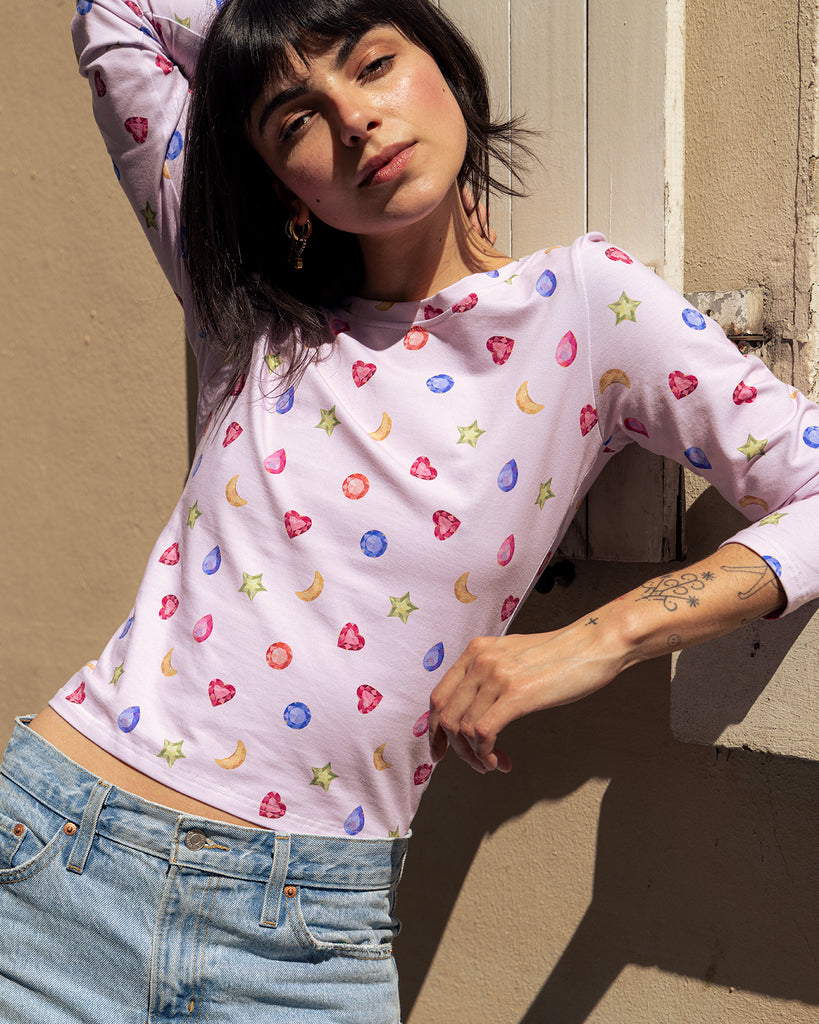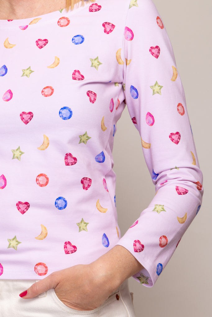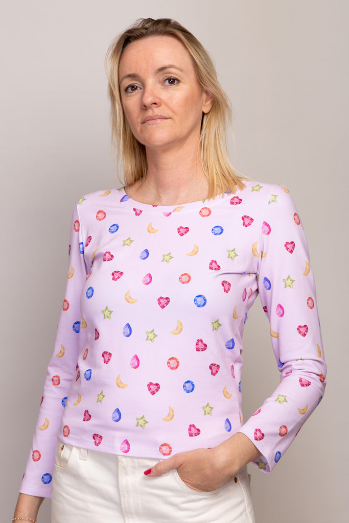 Ce Tee-shirt manches longues est moulant. Son imprimé est ravissant, facile à conjuguer avec un jean. Le dos est légèrement décolleté.