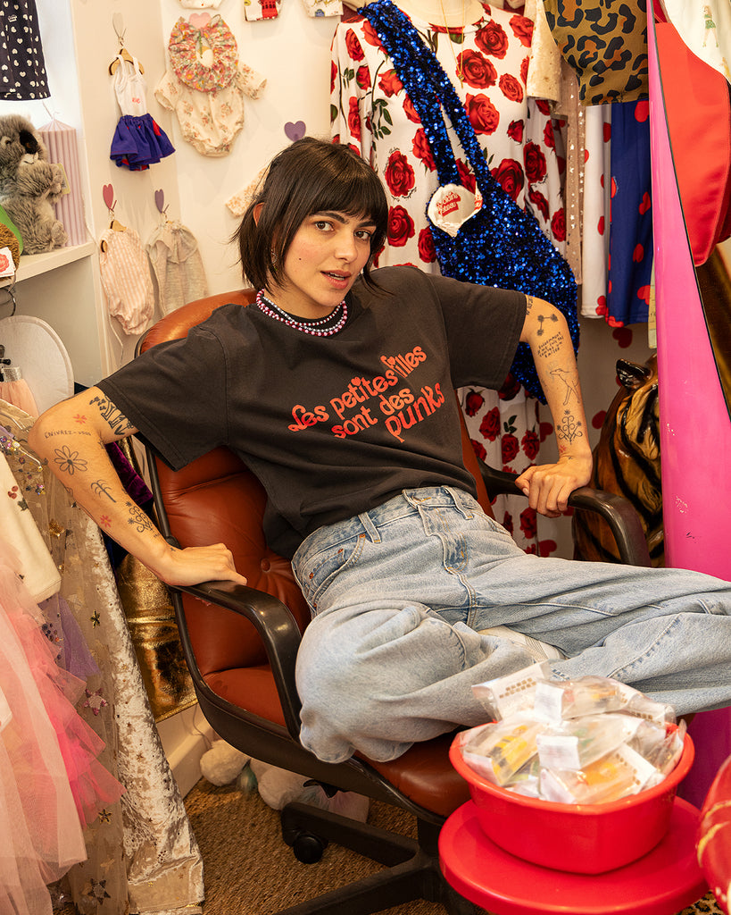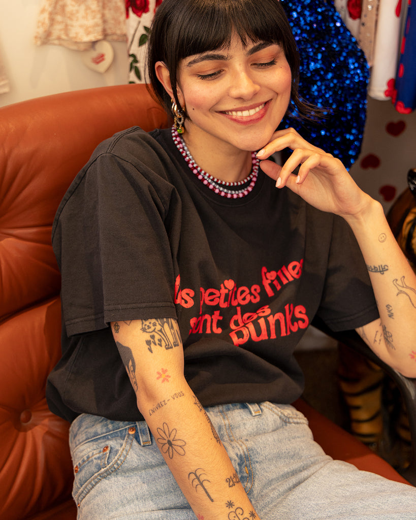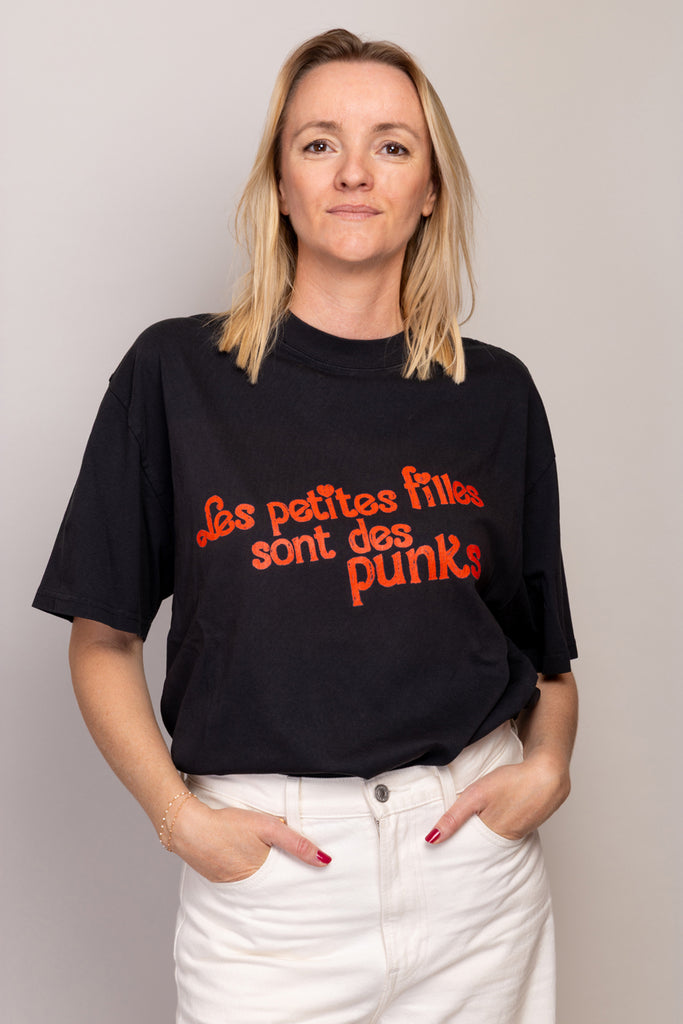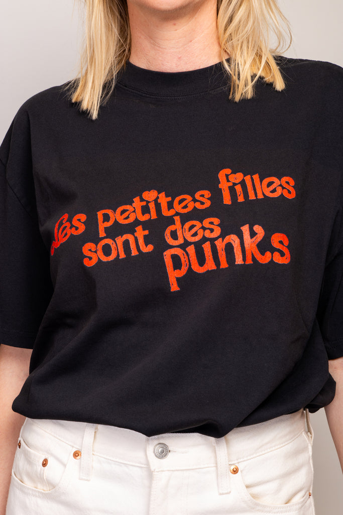 T-shirt oversize KELLY "Les petites filles sont des Punks" Noir