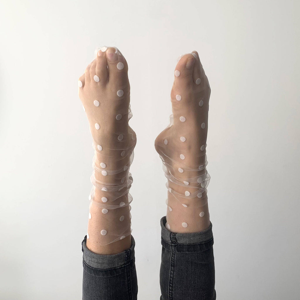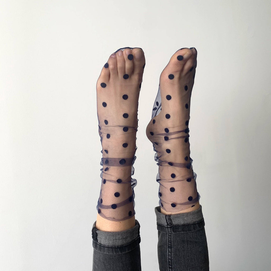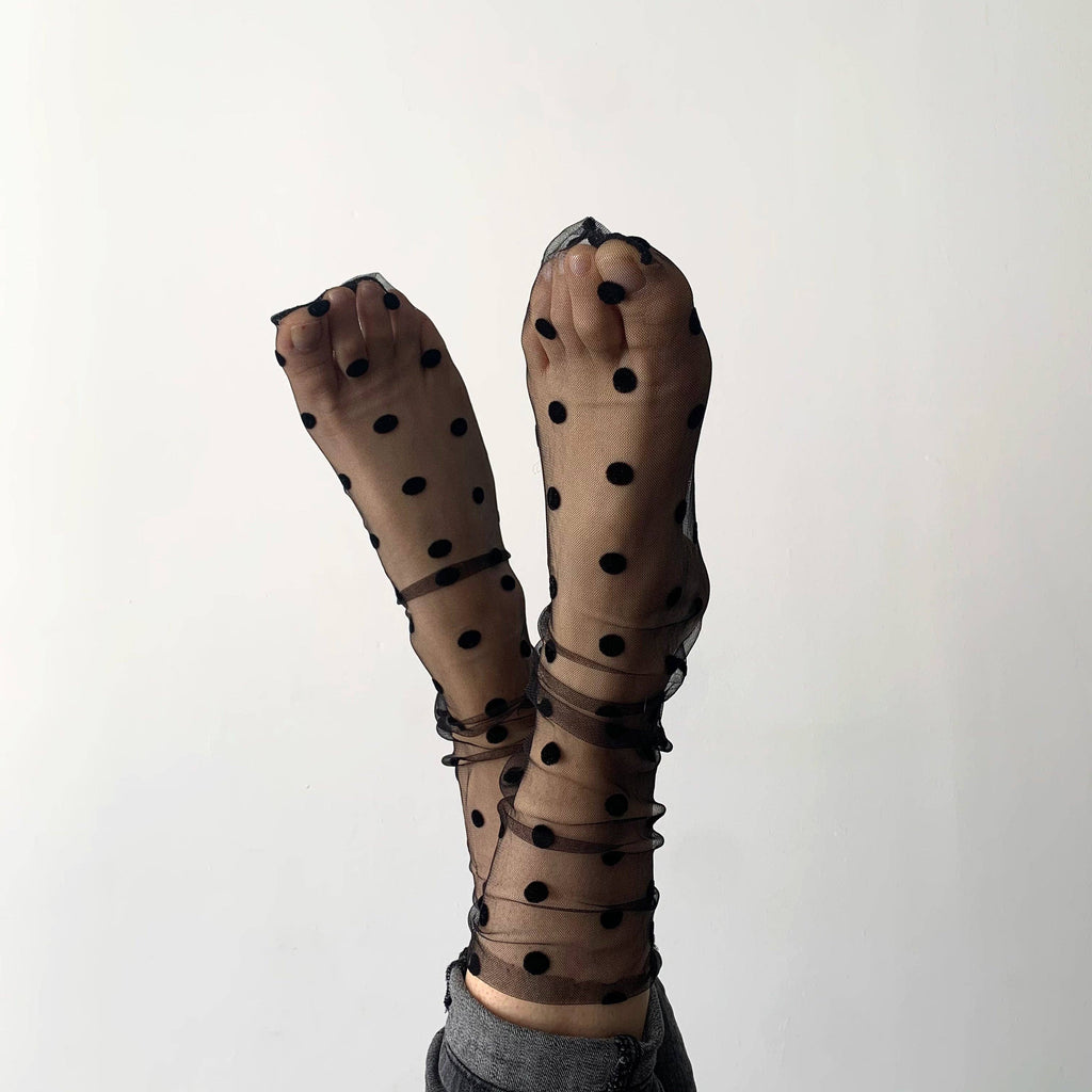 Chaussettes transparentes en tulle et pois velours noirs