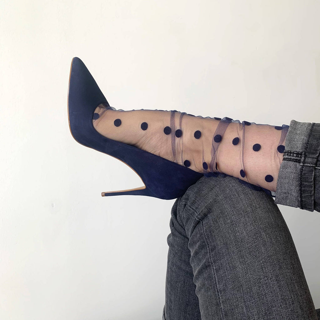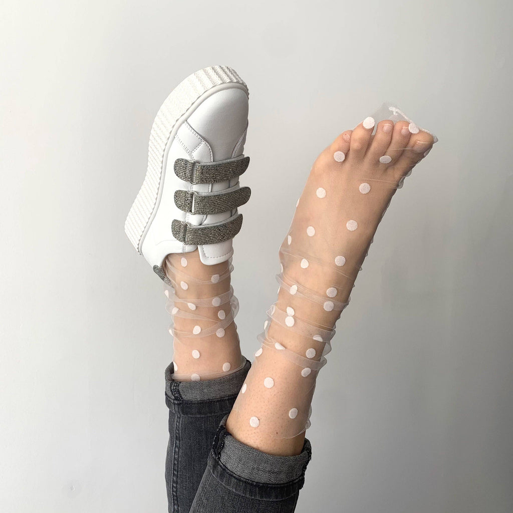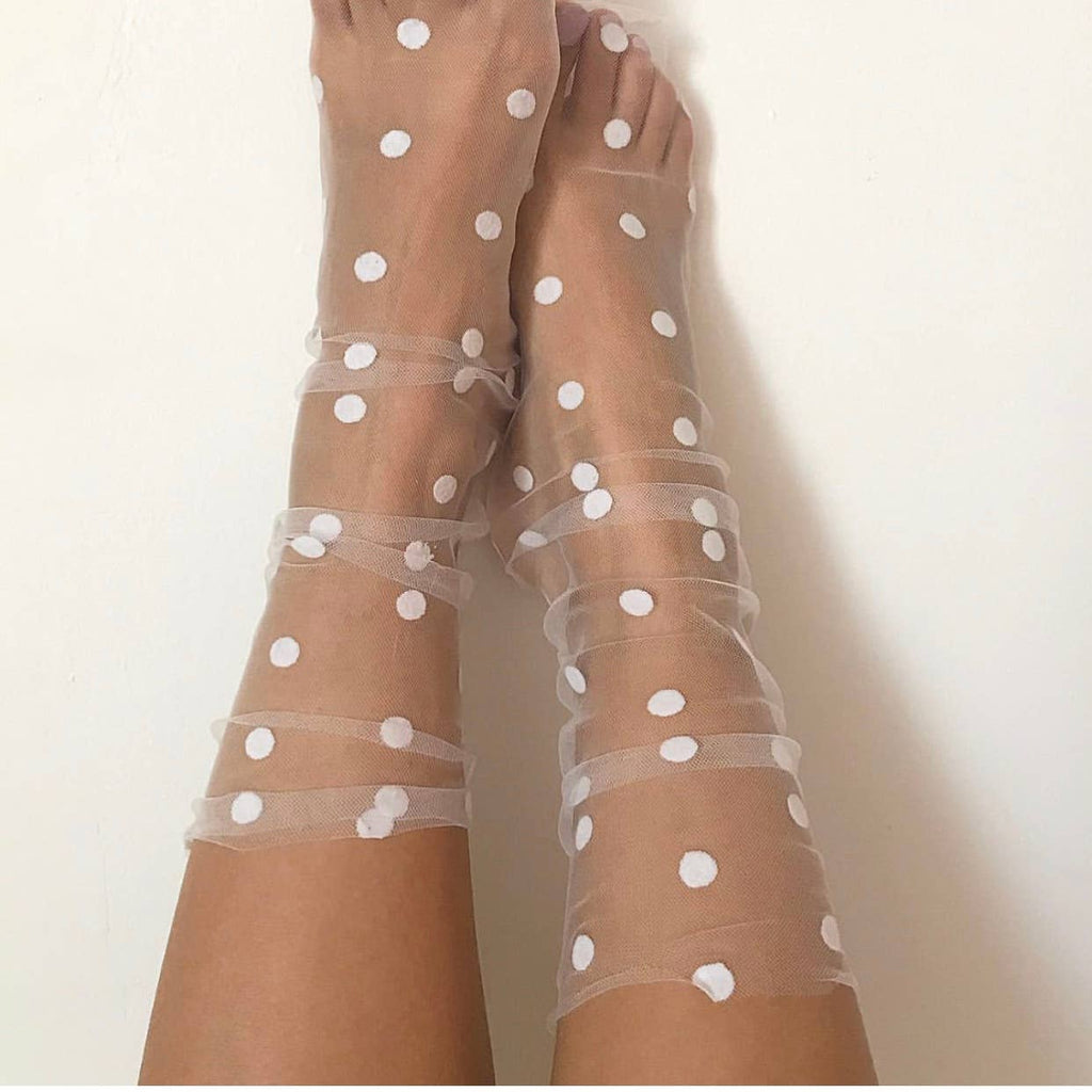 Chaussettes transparentes en tulle et pois velours noirs