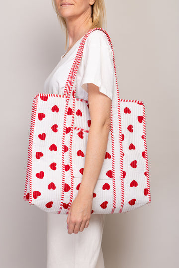 Le shopping bag est pratique et grand et doublé de cette jolie rayure rose et rouge