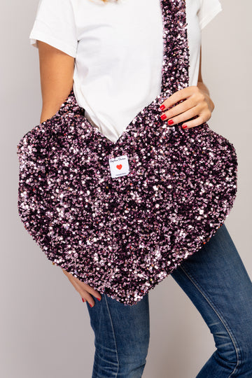 Tote bag COEUR paillettes Roses