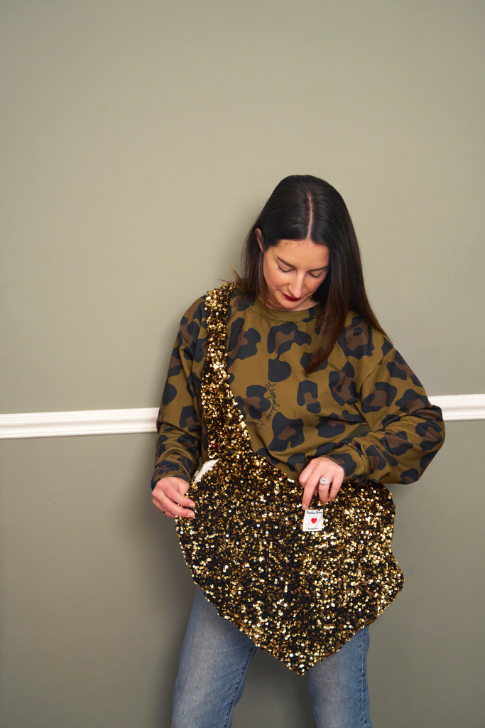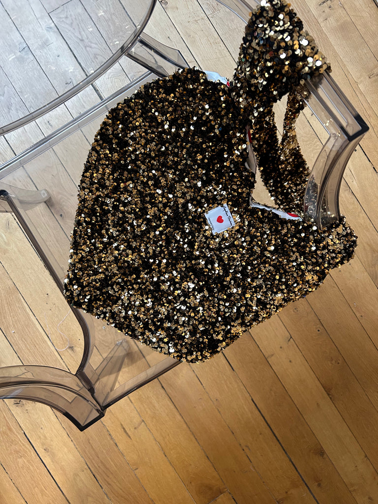 Sequins sur velours 100% polyester, doublure satin polyester imprimée (les imprimés varient selon les saisons)