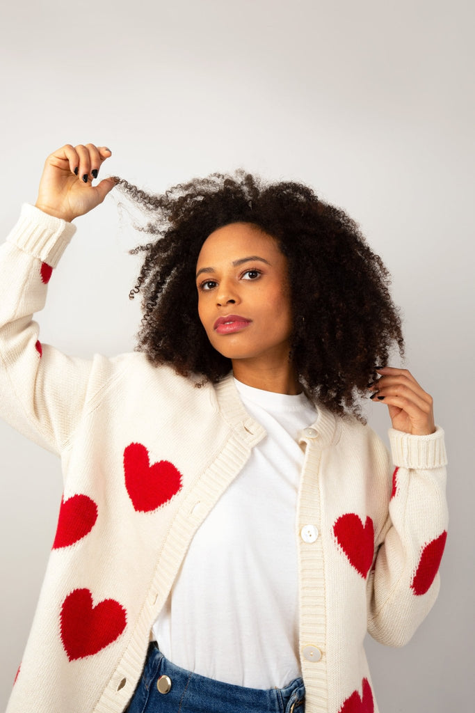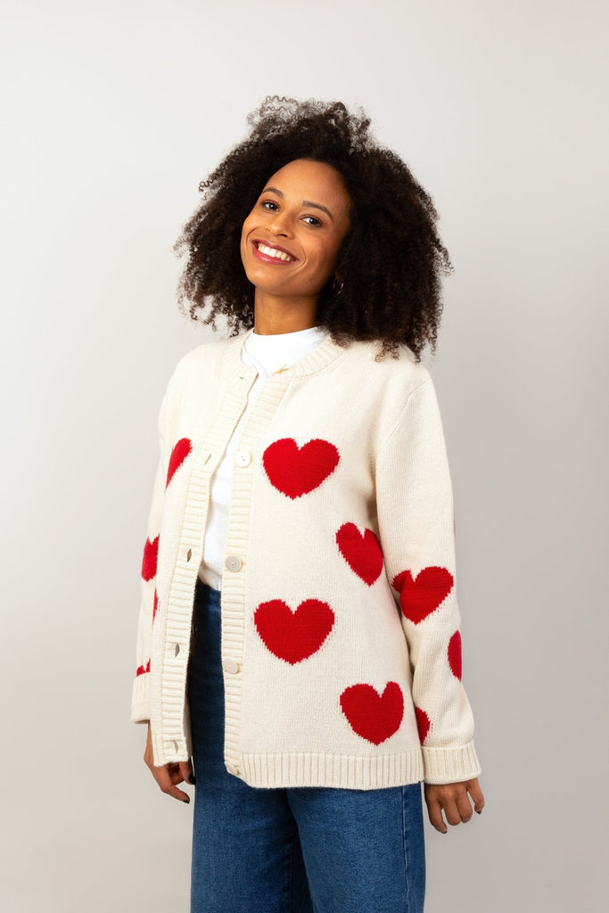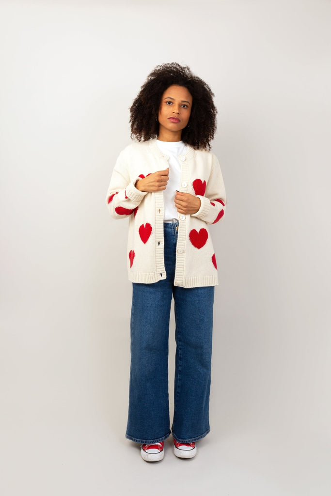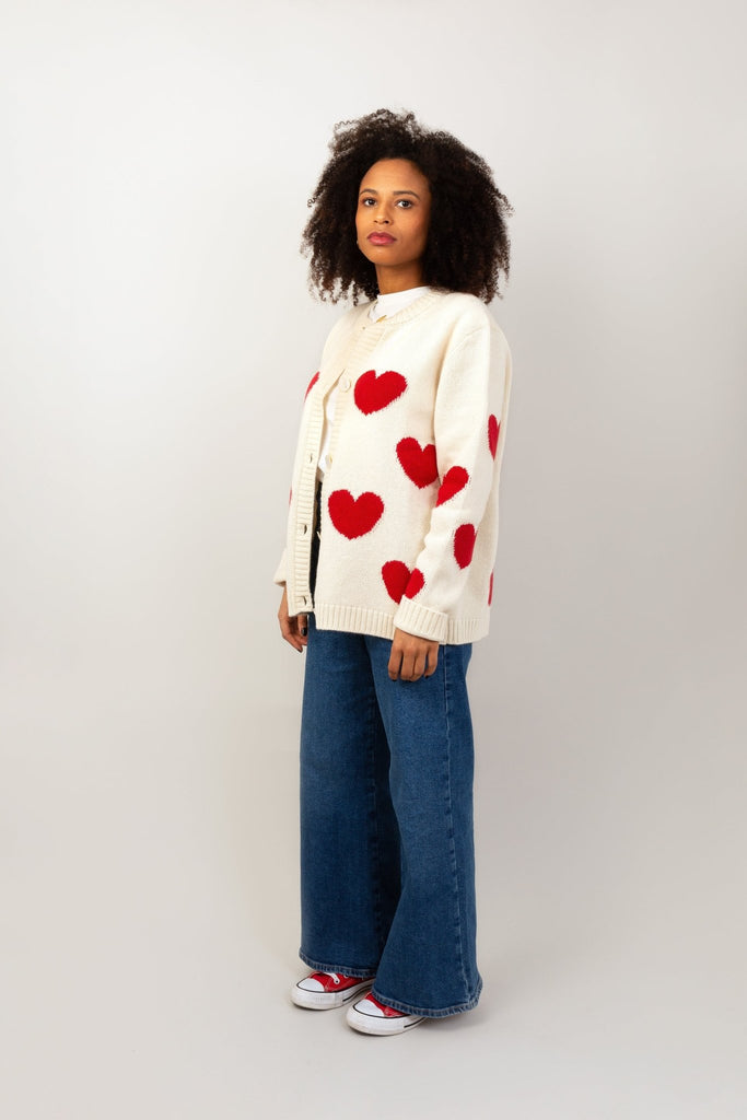 Cardigan CHARLOTTE Ecru Jacquards Coeurs