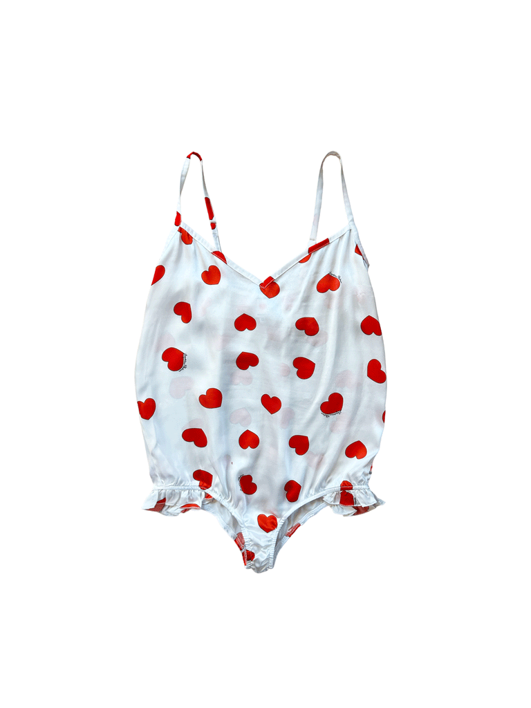 Body WANDA Blanc Coeurs Rouges (Soie)
