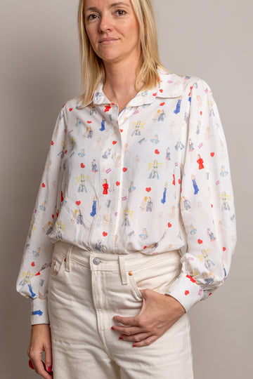 Apportez une touche de fantaisie à votre look avec notre chemisier Electra imprimé "Britney". Doté de larges manches bouffantes, ce chemisier boutonné milieu devant offre un style unique et original.