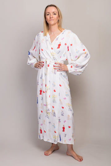 Kimono long en satin imprimé "Britney" avec une ceinture