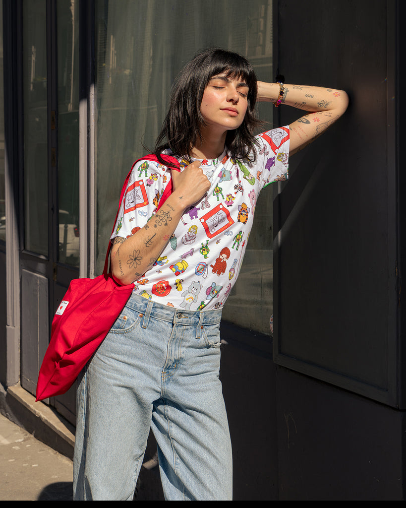 Notre tee-shirt GLORIA "Vintage toys" apportera une touche de nostalgie à votre look! Avec sa forme loose et ses manches courtes, le tee-shirt combine confort et originalité. Idéal pour un look décontracté, ce tee-shirt se porte avec un jean ou une jupe.